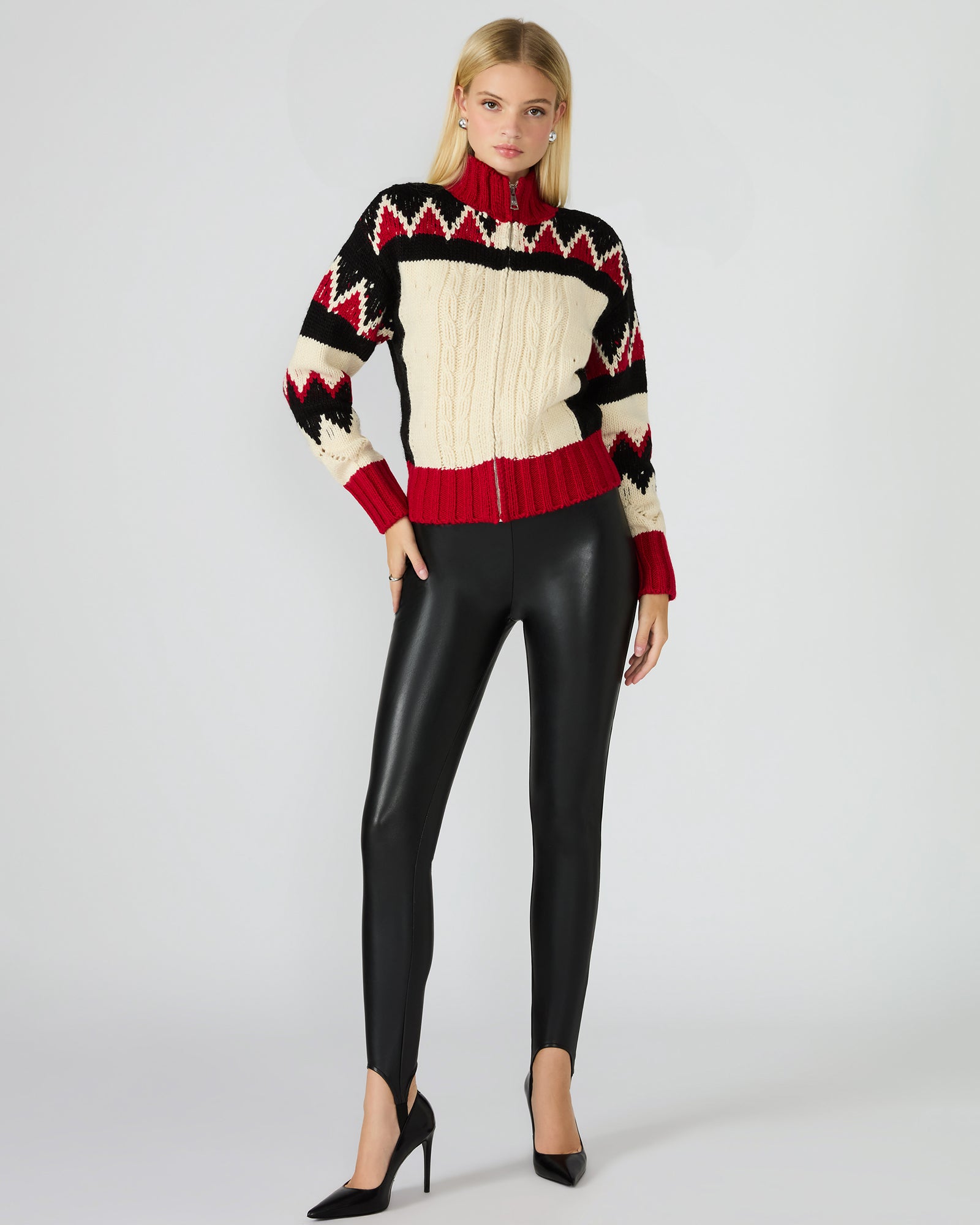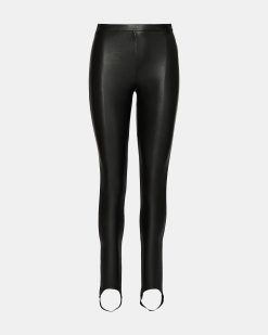 These VEGAN LEATHER STIRRUP BLACK feature a sophisticated faux leather finish that offers the look of genuine leather with a cruelty-free approach. Designed with stirrup detailing. they ensure a secure fit that stays in place throughout the day. making them ideal for layering under boots or pairing with various footwear. Combining durability with a sleek silhouette. these leggings provide both style and comfort for a modern. polished wardrobe.