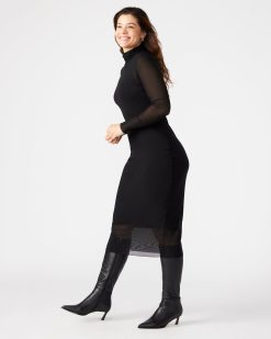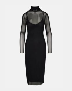 The VIVIENNE features a lined midi length mesh outer layer finished with a mock neck and thumbhole sleeves.