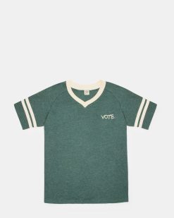 Enhance your wardrobe with our VOTE . With a comfortable short-sleeved v-neck design and contrast color neckband and sleeve bands. you’ll make a stylish statement while promoting democracy. The added locker loop at the back neck allows for easy hanging. making it a versatile and convenient addition to your collection.